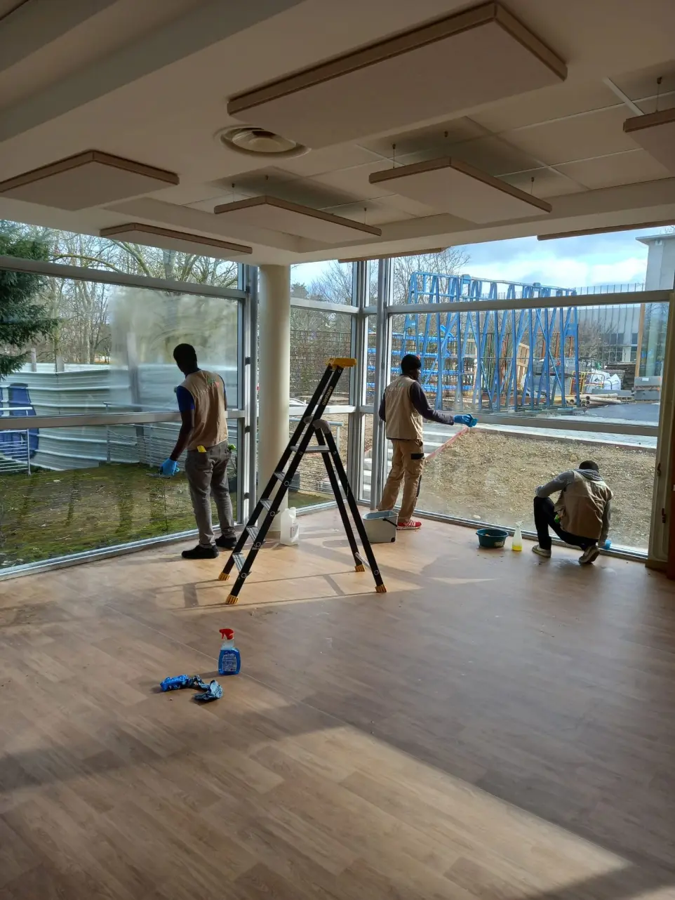 - Nettoyage des vitres, poignées, digicodes