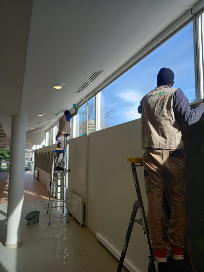 - Entretien des sols, surfaces vitrées et sanitaires